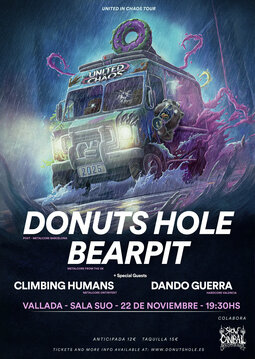 El United in chaos tour de la mano de Donuts hole desde Barcelona y Bearpit de UK llega a Vallada acompañados de Climbing Humans y Dando Guerra, una noche de Post MEtalcore, metal alternativo y Hardcore.