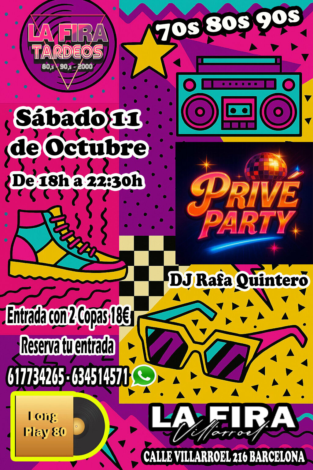 Un gran ambiente, buenos amigos/as, unas copas y toda la música que sonaba en la sala B o Privé de las discotecas de la época en versiones originales, pop internacional, nacional, pachanga y música de fiesta. ¿¿Qué más se puede pedir??