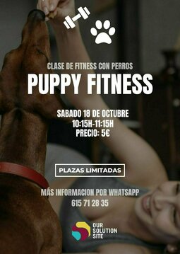 Una clase de lo más divertida! Puppy Fitness es una clase dirigida de entrenamiento funcional con pesos ligeros y rodeada de la mejor compañía posible: nuestros perros más leales.