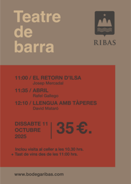 Dissabte 11 d’octubre de 2025, Bodega Ribas organitza una sessió de Teatre de barra que