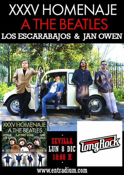 Actuación especial de Los Escarabajos en la sala Long Rock de Sevilla con motivo del XXXV Homenaje Nacional a The Beatles, ambientada con el mercadillo de coleccionismo de Beatlemania y la participación del polifacético músico neoyorquino Jan Britten Owen como artista invitado de la banda hispalense: Aclamado por Paul McCartney, ha tocado con The Quarrymen, Joey Molland de Badfinger o The Fab Faux, así como para Allan Williams y Sid Bernstein, además de engrosar el cartel de The Cavern, tanto en Inglaterra como en Argentina, participando siete años consecutivos en la International Beatleweek de Liverpool más otros diez en la Semana Beatle de Buenos Aires y recorriendo con su particular show catorce países de cuatro continentes. Apertura de puertas: 18:00 h. Concierto: 18:30 h.