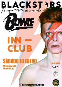 BLACKSTARS, La banda gallega nace como la mayor producción, homenaje, al artista británico David Bowie, considerado uno de los músicos más influyentes del siglo XX. Con ocho músicos sobre el escenario Javier Martí (Voz), Peter Stone (guitarra), Patricia Insua (bajo), Manuel Andón(guitarra), Sly (teclados), Lex Tosca (batería), Manuel Rodríguez (saxo y percusión) y Joana de Sousa (coros), la banda recrea el amplio universo del hombre de las estrellas.