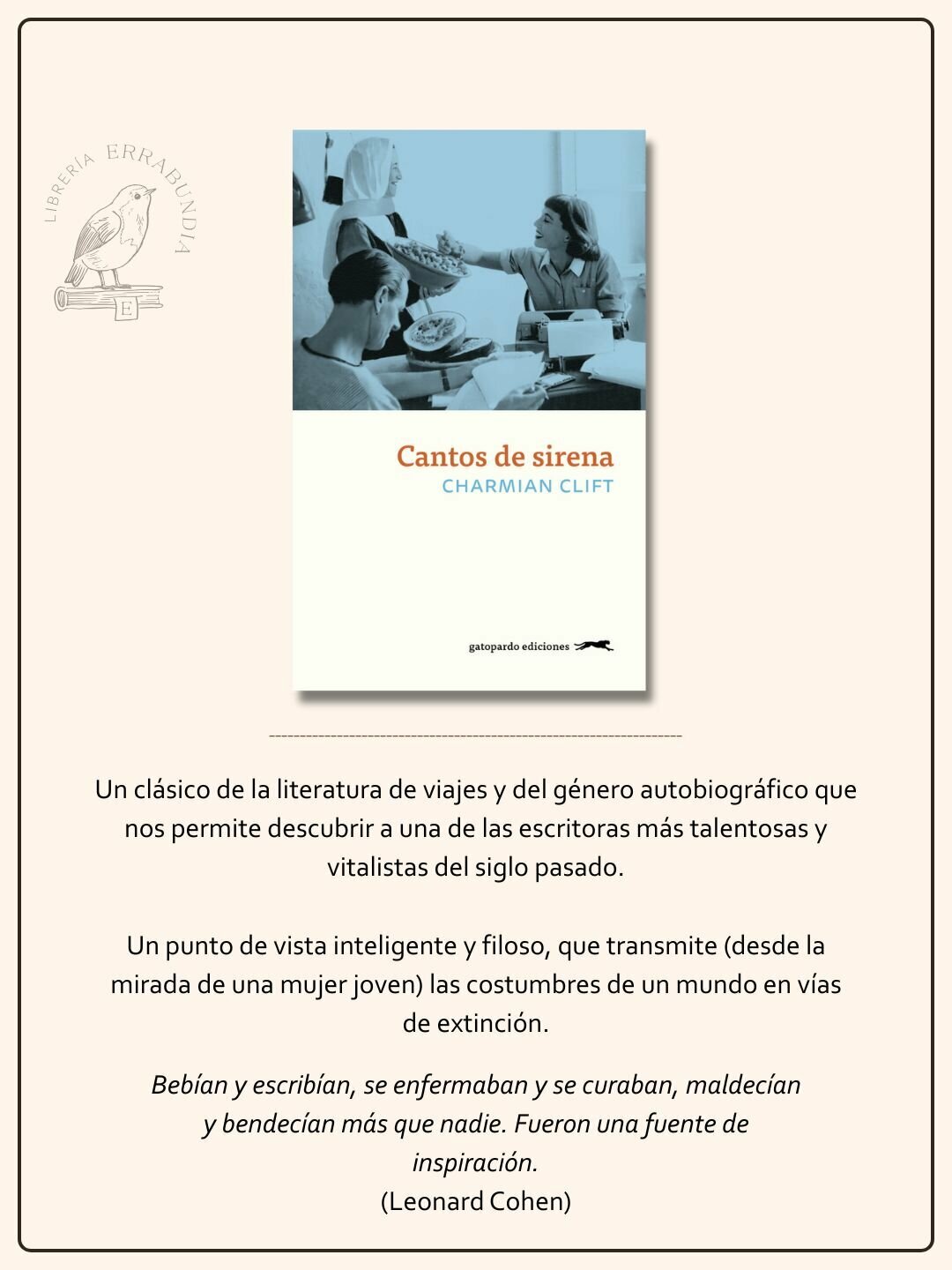 Segunda lectura: Cantos de sirena, de Charmian Clift. (obtén tu ejemplar con un descuento especial en Errabundia Librería).