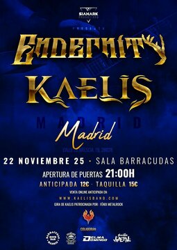 Ven a disfrutar del concierto de los madrileños Endernity y los sevillanos Kaelis en Madrid!!! Tras el éxito de su concierto en Sevilla, ahora se citan en Madrid para descargar toda su energía. Endernity vuelven con su sonido apisonador y además te regalarán alguna sorpresa de sus homenajes a Metallica y Pantera. Kaelis por su parte estrenan nuevo trabajo y te conquistarán con un show impecable y lleno de sorpresas.