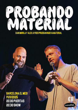 Alex Ayres y Dani Morla prueban y trabajan su material nueva que no tienen en sus shows actuales. Hacen 30 minutos cada uno. Entrada sin consumicion.