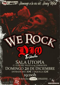 Esta noche de metal contaremos con la actuación de We Rock, que ya cuenta con una trayectoria de más de 6 años rindiendo tributo al creador del signo identificador del heavy metal (“cuernos del diablo”), y que ha preparado un setlist especial correspondiente a las etapas de Rainbow, Black Sabbath y Dio.