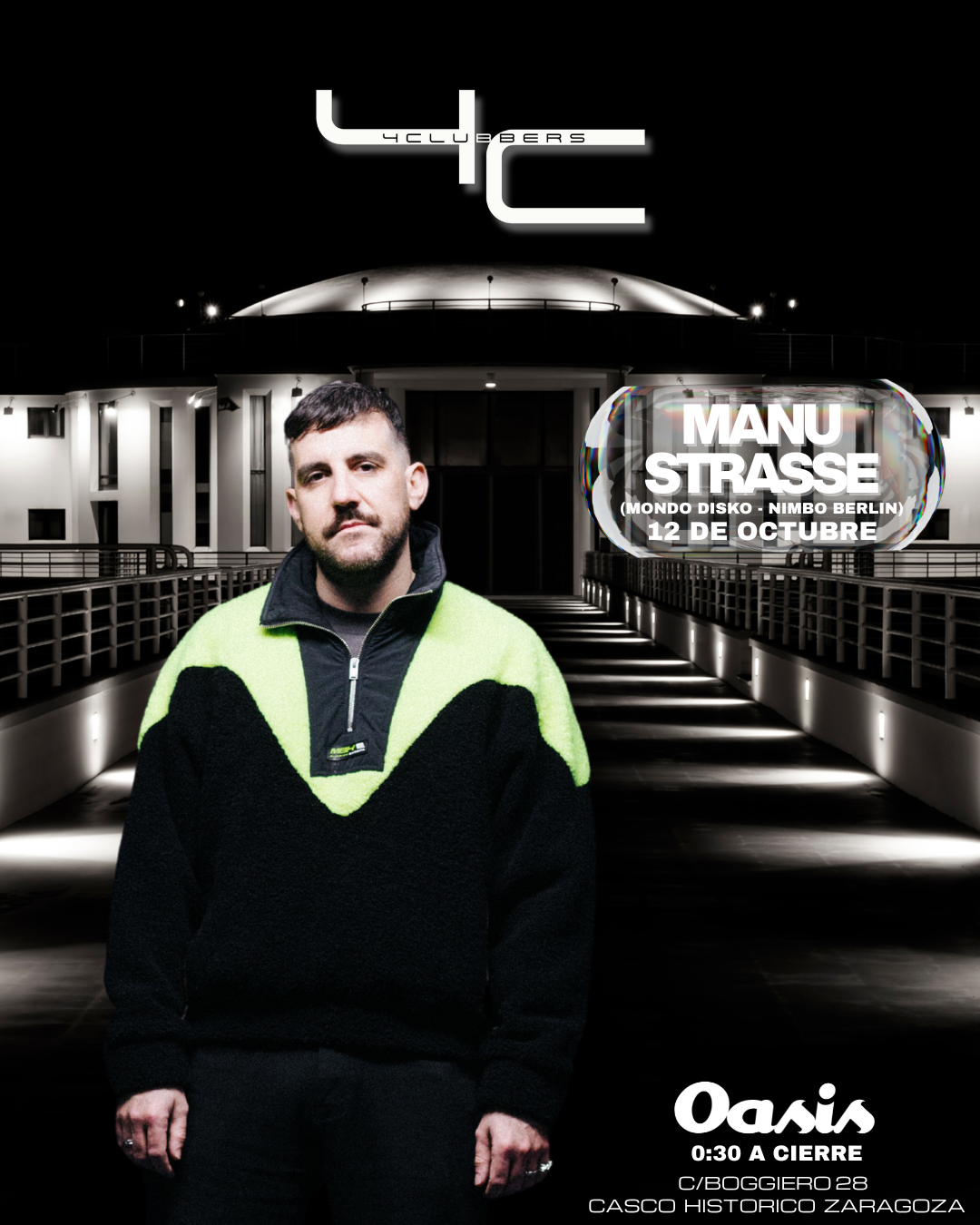 4CLUBBERS presenta en Zaragoza una noche muy especial con Manu Strasse (Mondo Disko · Nimbo Berlin), acompañado por nuestros residentes Josele Rubio y Diggola.