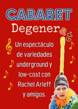 Cabaret degenerat es un espectáculo underground y low-cost de variedades presentado por la humorista y creadora de Anti-Karaoke, Rachel Arieff. Es un show participativo en el que la gente ha cantado, bailado flamenco mientras recitando poesía, ha hecho comedia, o ha hecho cosas indescriptiblemente raras en el escenario. También es una velada en la que presenciamos al proceso crudo de creación, en el que los fallos forman una parte integral del show. Mientras tanto, Rachel mantiene el ritmo y la energía con sus intervenciones cómicas y sus canciones delirantes de cosecha propia.