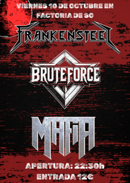 La nueva y emergente banda de Heavy/Speed Metal FRANKENSTEEL, descargando su rabia y energía propia de la juventud sobre el escenario!! La nueva generación rinde homenaje a los artistas más icónicos de la era dorada del Heavy Metal, además de empezar a componer sus propias canciones originales con un toque fresco e innovador. ¡¡Un espectáculo que no te puedes perder!!