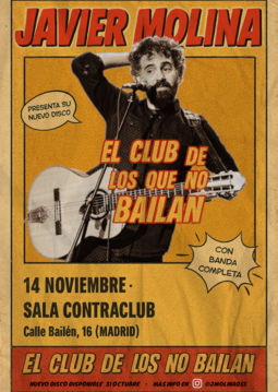 Después de años cultivando la ironía, la poesía y el humor en sus canciones, Javier Molina presenta su nuevo trabajo: El Club de los que No Bailan, un disco que mezcla la sátira con la ternura, la crítica con la carcajada y la melancolía con el vino.