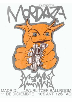 El cuarteto madrileño formado en 2024 conjura todas sus influencias en un vórtice de fuego. Su centro de gravedad pone la contundencia en medio del meollo, pero su espíritu melódico se arraiga hasta el tuétano. Encasillarlos en el post-punk, el noise pop o el punk rock sería vago e inexacto. Mordaza van mucho más allá.