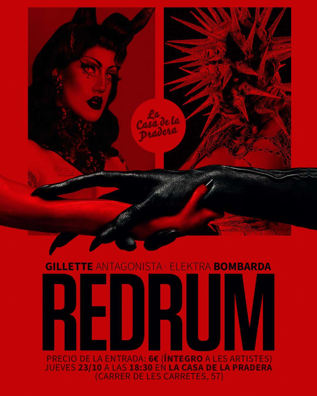 Este Halloween, Gillette Antagonista y Elektra Bombarda se unen para presentar MURDER, un espectáculo que narra dos historias de terror basadas en hechos reales (¿o no?). Con ellas, el cabaret se deforma, lo poético se vuelve perturbador y el drag se convierte en pura pesadilla. ¿Te atreves a enfrentarte al lado más oscuro del transformismo barcelonés?