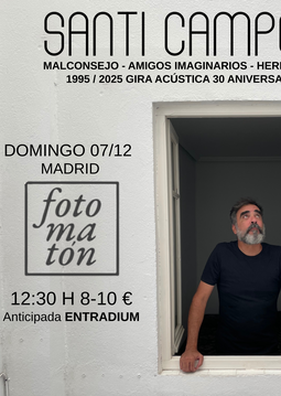 Concierto acústico con motivo del 30 aniversario desde la edición del primer mini LP de Malconsejo. El concierto consistirá en un repaso por toda la trayectoria del autor segoviano, desde Malconsejo, pasando por Amigos Imaginarios, hasta sus discos en solitario.