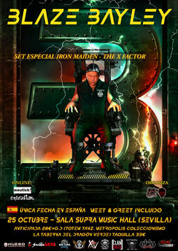 El legendario Blaze Bayley, ex vocalista de Iron Maiden, ofrecerá un concierto único e irrepetible en España este 2025. En una noche que promete ser inolvidable para los amantes del heavy metal,Blaze interpretará muchos temas de Iron Maiden, , además de incluir temas destacados de sus aclamados trabajos en solitario como "Silicon Messiah" y "Circle of Stone".