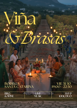Autumn styling with a subtle Halloween touch, unlimited Mediterranean BBQ, Santa Catarina wines, and the incredible Disart Music duo live. A carefully curated, sensorial experience—made to toast slowly under warm candlelight.