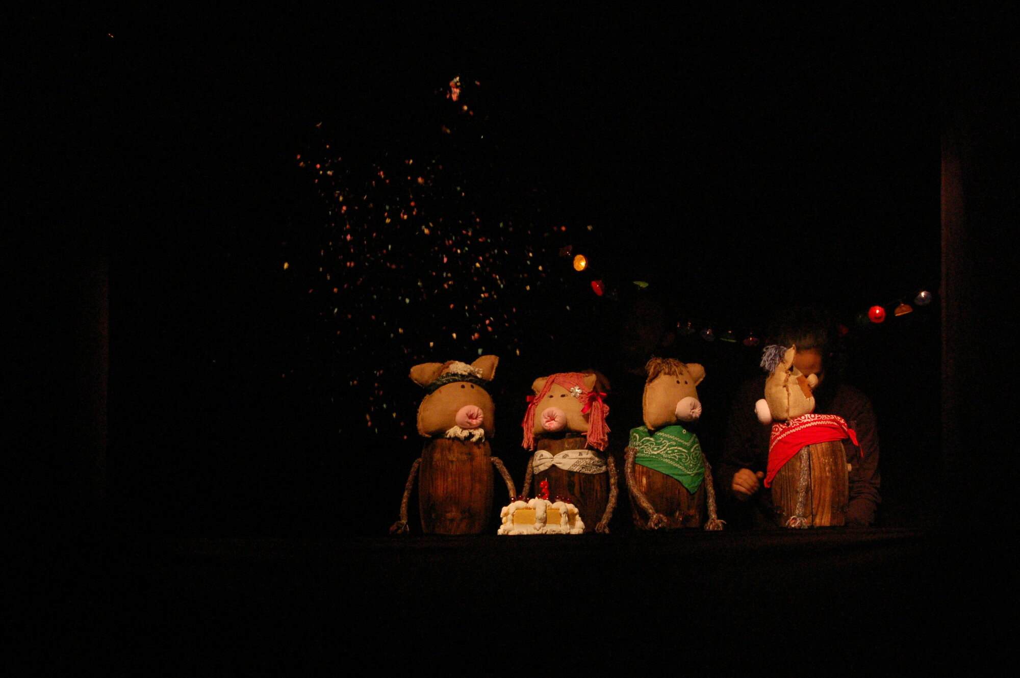 Un espectáculo de actores y objetos que narra la historia real de los tres cerditos… o mejor dicho, de los dos cerditos y su hermana, una cerdita moderna, inteligente y luchadora. Una visión actual que defiende dos principios fundamentales: igualdad y solidaridad.