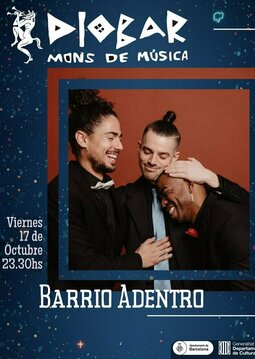 Este viernes, 17 de octubre, a partir de las 23.30 h, vamos a disfrutar con la energía de Barrio Adentro, el proyecto que comparten Climent Campà, Diego Coppinger y Rodrigo García... Tres jóvenes músicos que vienen empujando fuerte en la escena latina de nuestra ciudad y que son bien conocidos por el público del sótano mágico...