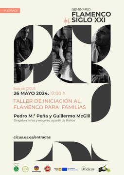 Dirigido a niños y mayores, a partir de 8 años que, sin proceder de un entorno flamenco, quieran iniciarse, o profundizar en su afición a este arte. A través de una clase amena y cercana, ilustradas por estos dos grandes maestros, conoceremos algunos de los entresijos que lo componen, para poder disfrutar más aún, si cabe, de la Música Flamenca.