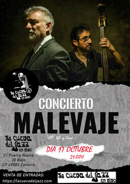Viernes 17 de octubre. MALEVAJE. Formato trío. Hora: 21:00. Entrada anticipada: 15 €. Entrada taquilla: 18 €.