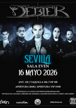 El sábado 16 de Mayo, prepárate para una noche épica en la SALA EVEN de Sevilla. Y es que los madrileños DÉBLER ETERNIA (Débler hasta el año 2022) regresan tras su última visita de 2023, con un show muy especial que no querrás perderte: la presentación en directo de su nuevo disco, el quinto de su trayectoria, por lo que la cita se presenta única y llena de sorpresas.