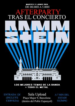 Afterparty RAMMSTEIN en sala Upload tras el concierto de la banda, a tan sólo 7 minutos a pie del Estadi Olimpic, en la misma montaña de Montjuïc !!