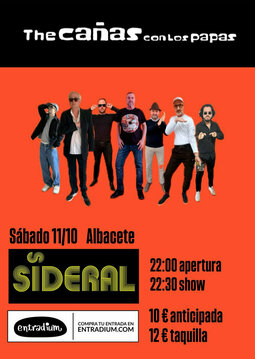 THE CAÑAS CON LOS PAPAS es un grupo creado en Albacete en 2015 por los experimentados músicos Jesús Villar (LOS HIJOS DE SÁNCHEZ, LOS FABIOLAS, LOS WONDERBRAGS), Enrique Montoya (MOSCA POP) y José Ricardo Montoya (AÑOS MARCIANOS). Pop rock con raíces manchegas con dos discos publicados, "Copias copas" (2015) y "La banda cañera" (2023). Movidos por las variadas influencias de sus componentes ofrecen una alquimia sonora distintiva que a nadie deja indiferente, un crisol musical con carácter paródico y desenfadado con un show muy divertido.