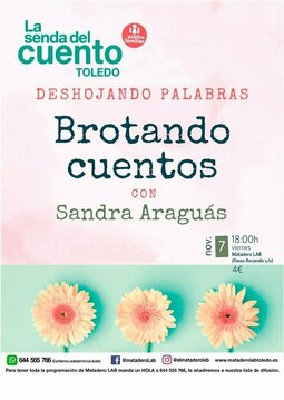 “Deshojando palabras. Brotando cuentos” es una sesión de cuentos tradicionales para público familiar. La intención es hacer sonreír a los más pequeños y que los mayores dis-fruten también de estas historias.