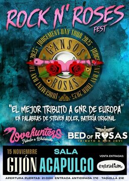 Comandado por Gansos Rosas , la mejor banda homenaje a Guns n Roses de Europa y 2 tributos de auténtico lujo a BON JOVI (Bed of Rosas) y WHITESNAKE (Lovehunters) disfrutaremos de una noche llena de diversión y de rock n roll .