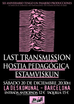 LAST TRANSMISSION rinde un sincero homenaje a la esencia de JOY DIVISION, llevando al directo las diversas caras del grupo, desde la esencia más punk y agresiva hasta la cara más ambiental, oscura y densa.